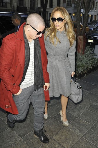 Jennifer Lopez e o namorado, Casper Smart, chegam a hotel em Nova York