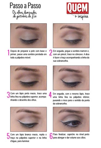 Muito simples de fazer, o estilo gatinho, com os olhos puxados e iluminados, pode ser feito em poucos minutos, e só precisará de quatro itens: sombra perolada ou de tonalidade clara, lápis preto, lápis branco e rímel.