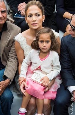 J Lo marcou presença no evento - que faz parte da Semana da Moda de aris - na companhia da filha, Emme, de quatro anos, e do namorado, Casper Smart. O filho - irmão gémeo de Emme - ficou em casa. Os gémeos são fruto do seu casamento com o cantor Mark Anthony.