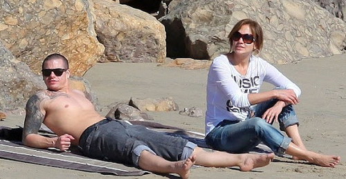 Lopez não levara fato-de-banho, mas enrolou a t-shirt de forma a revelar a barriga definida. Casper mostrou a boa relação que tem com as crianças, brincando com elas no areal.